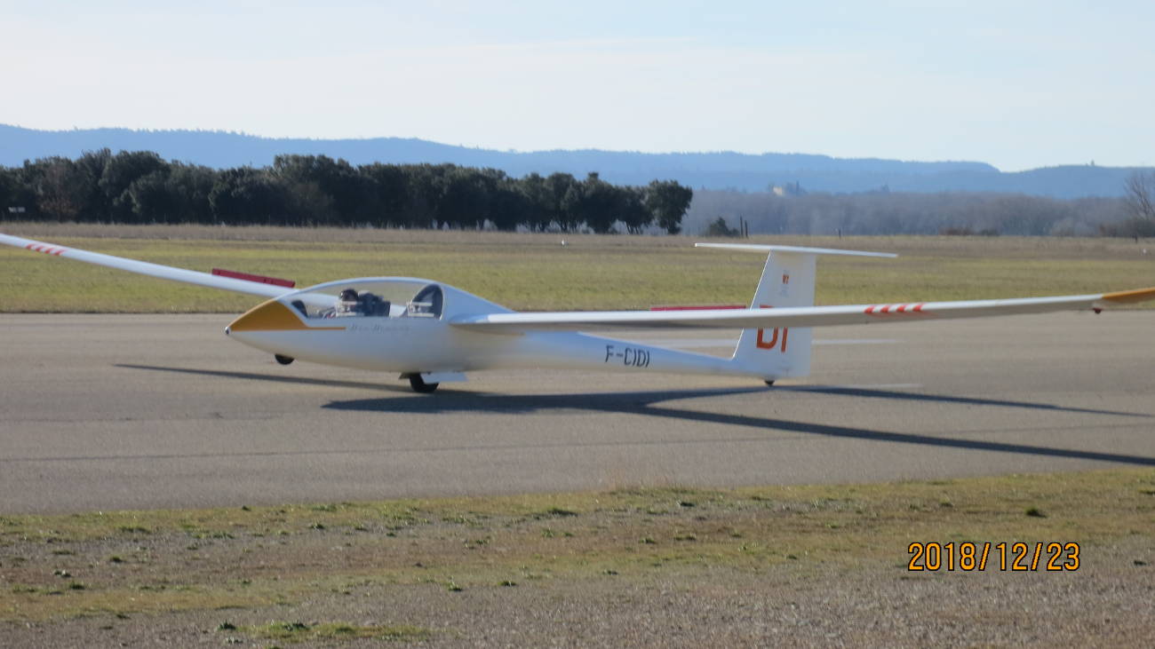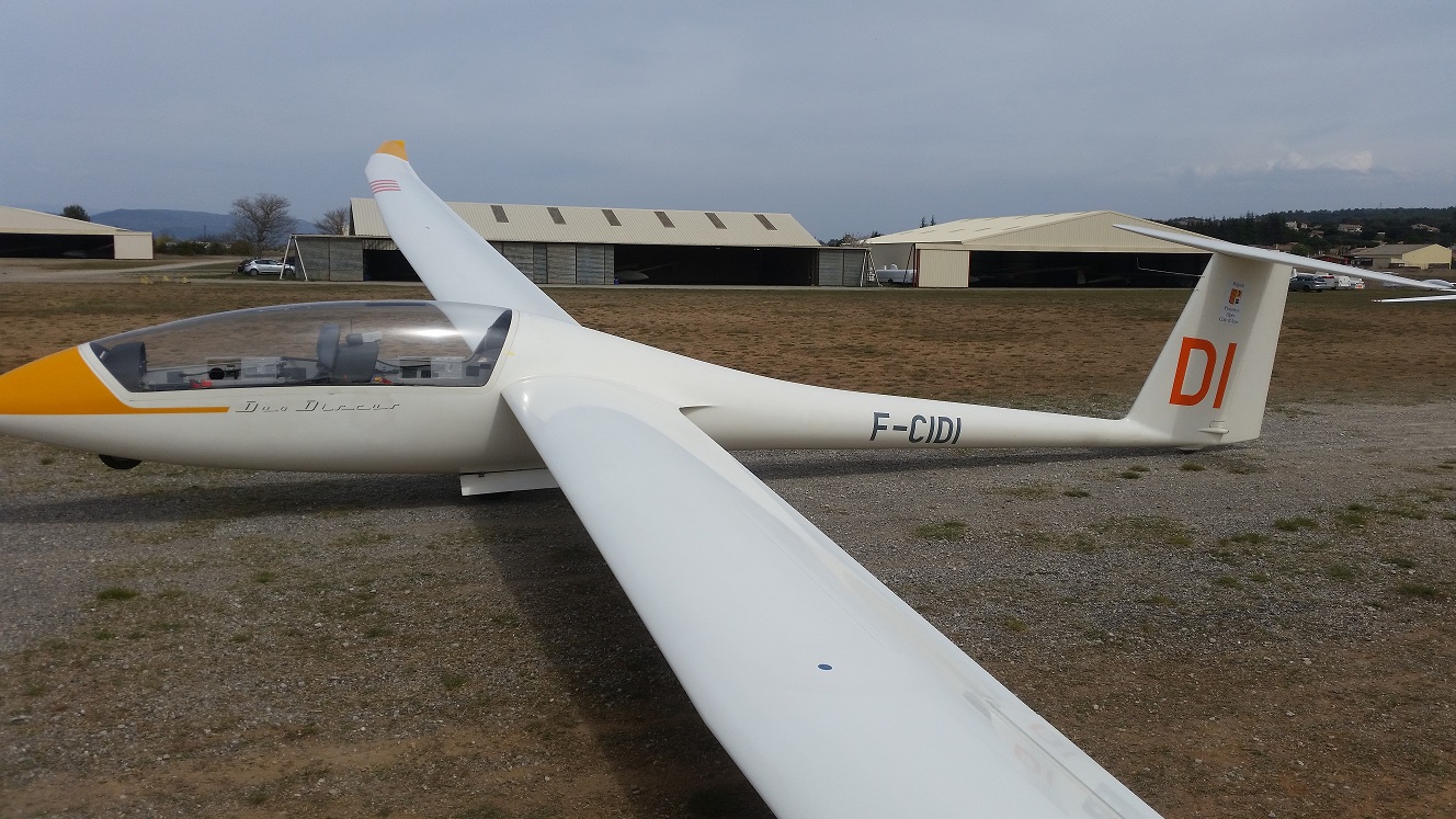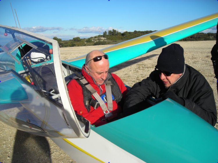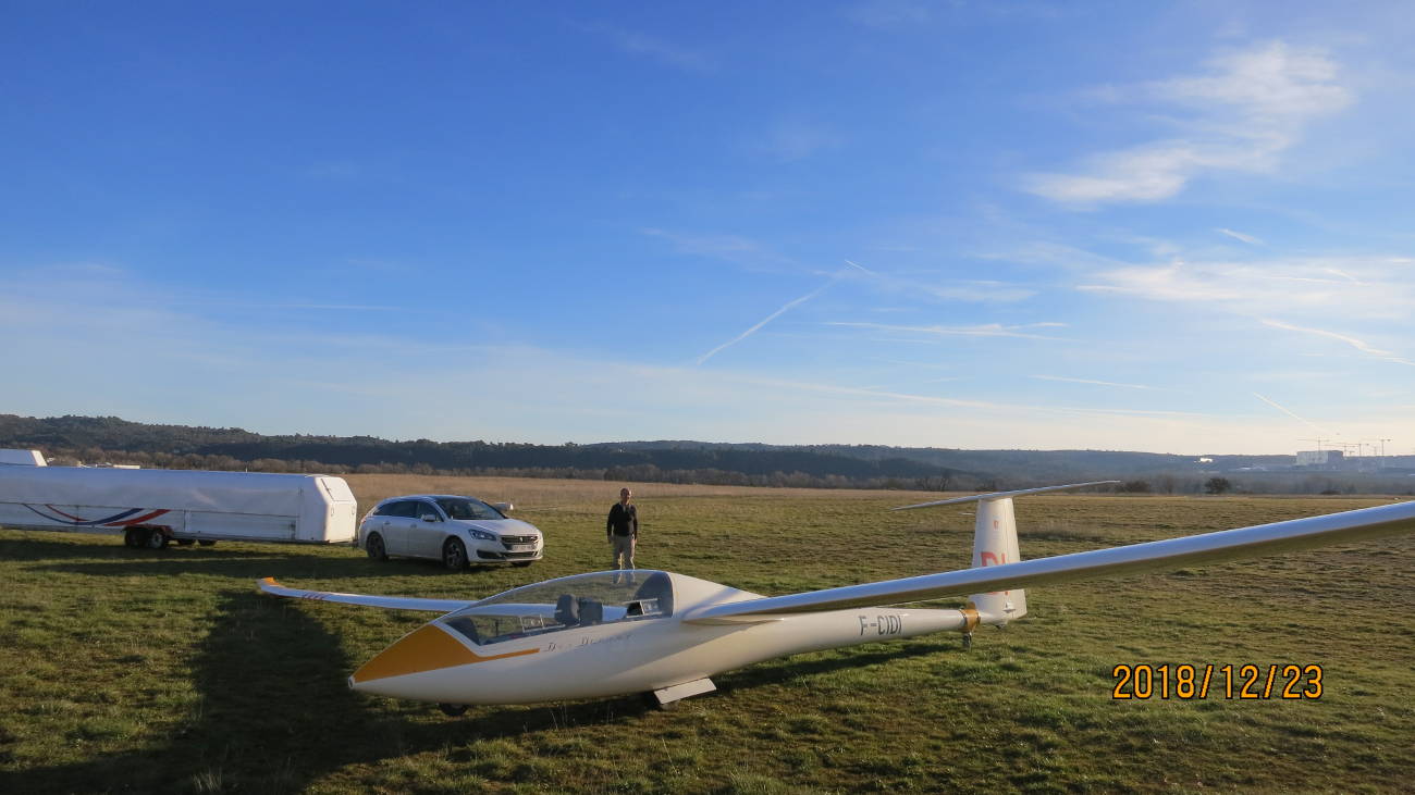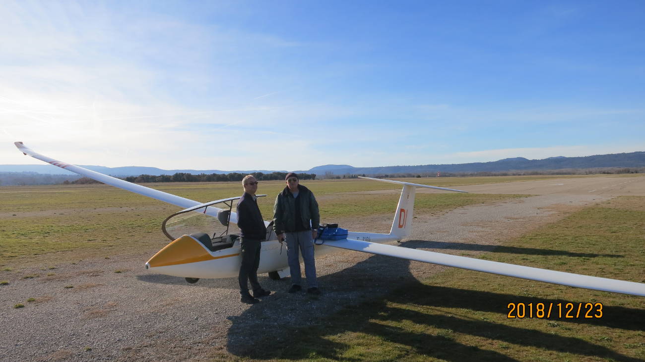 Ce n'est peut-être pas connu mais le Père Noël est protéiforme : cette année pour le LSV, il est apparu sous l'apparence de Laurent GUILLERAULT et de Régis KUNTZ ; Laurent a joué le rôle du pilote remorqueur et Régis celui du pilote du planeur. Ils sont partis tous les deux à bord du Dynamic WT9 vers Fayence et 2 heures plus tard étaient de retour à Vinon... Voilà, nous avons reçu notre Duo Discus F-CIDI.
