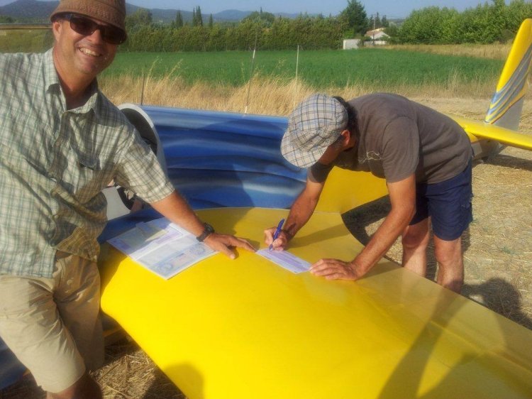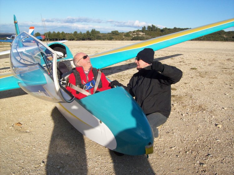 Encore un nouveau pilote breveté au club (1 brevet par an au LSV > (voir plus bas), c'est bien non ?). C'est Francis BASQUIN qui a obtenu son brevet de pilote en novembre de cette année. Régis KUNTZ, instructeur à Fayence, lui a fait passer l'épreuve pratique ; Francis avait déjà réussi l'épreuve théorique en milieu d'année. Nous lui souhaitons plein de beaux vols à venir.