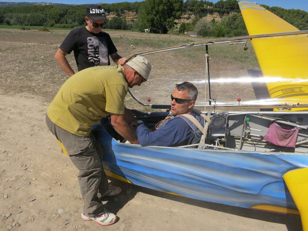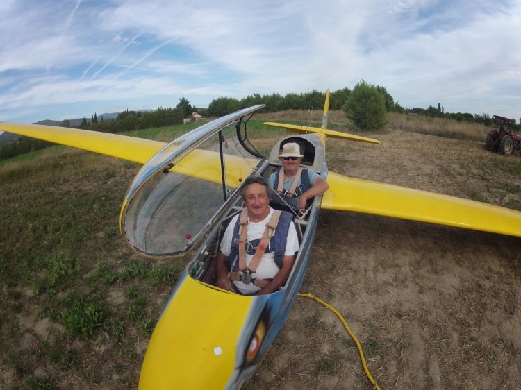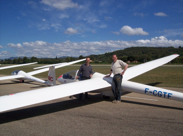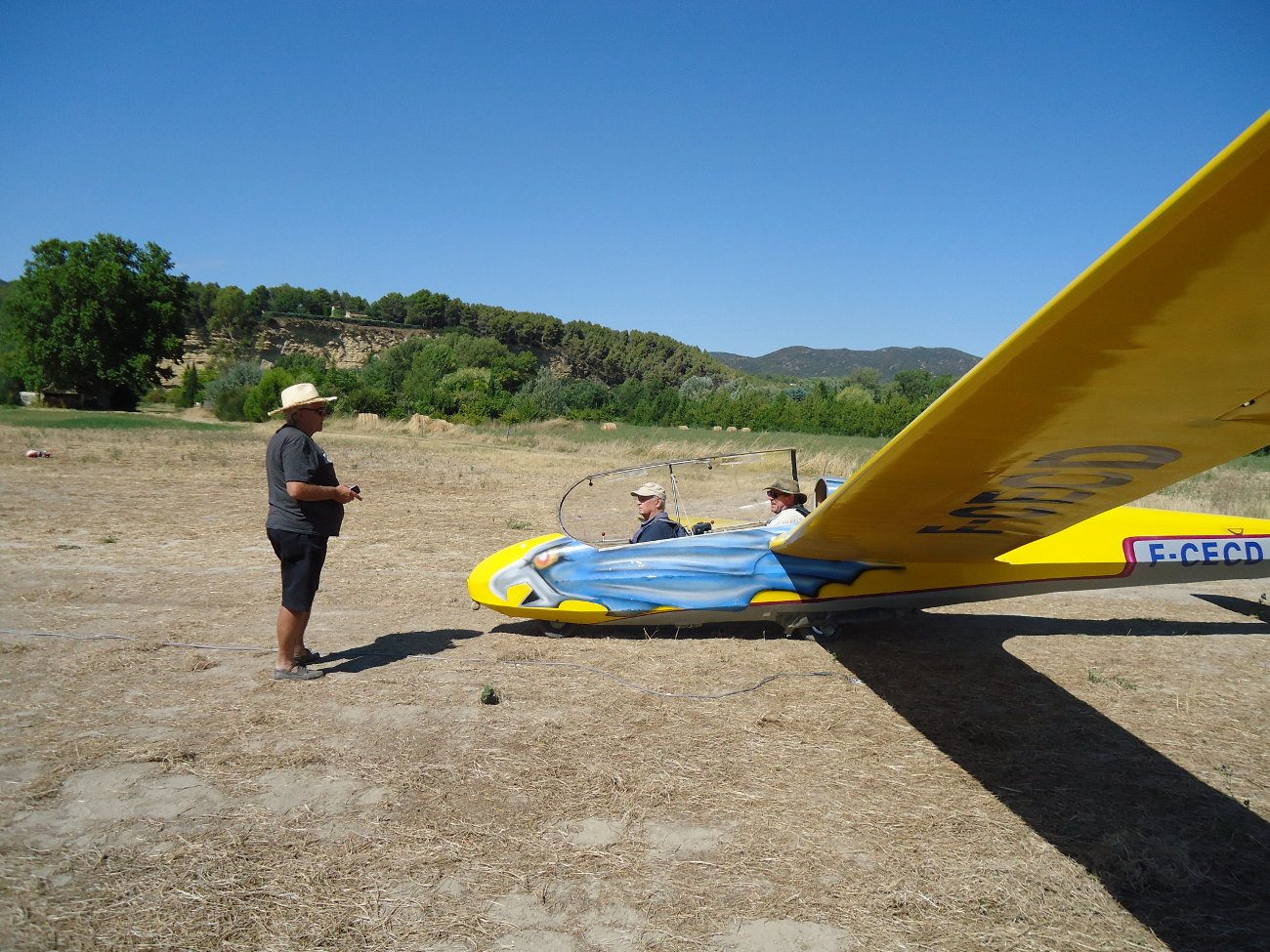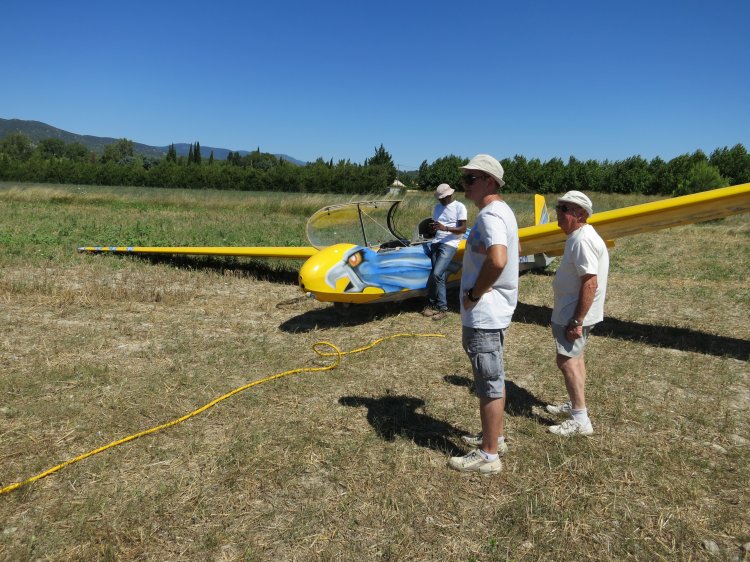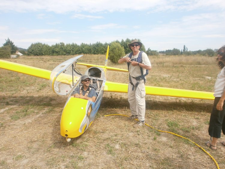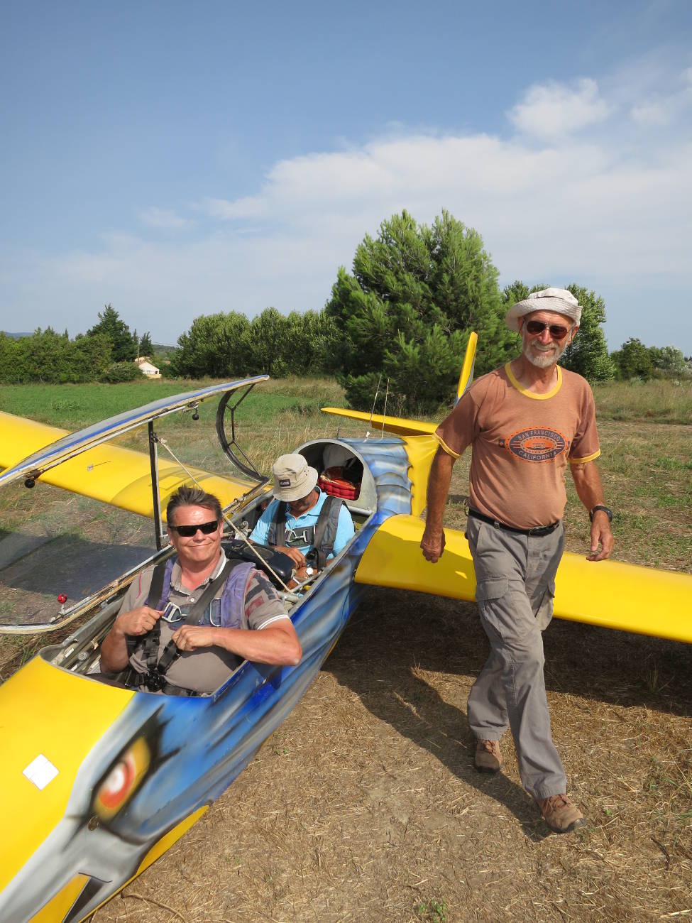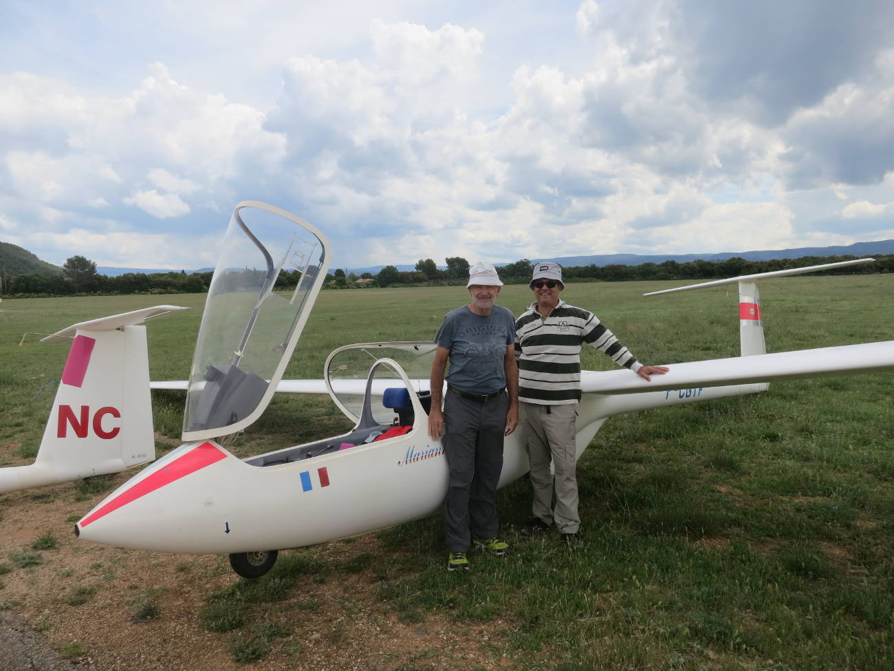 Et puis il faut aussi parler du stage que nous avons organisé et qui a été encadré par Rémi, instructeur au comité régional PACA. Il y a eu Francis du Cannet à côté de Nice et qui est venu poursuivre sa formation commencée depuis peu à St Auban. Il a très certainement apprécié (même s'il a probablement été un peu frustré par les conditions météo un peu difficiles) puisqu'il envisage de "rempiler" pour l'année prochaine. Et aussi Hervé qui est membre du club depuis déjà quelques années mais dont l'activité professionnelle ne lui laisse pas suffisamment de temps pour consacrer celui qu'il souhaiterait pour voler. Cet été, il a décidé de s'accorder le temps nécessaire ; et Rémi a pris l'engagement de lui faire passer son brevet avant la fin de l'année ; pari tenu => voir l'article