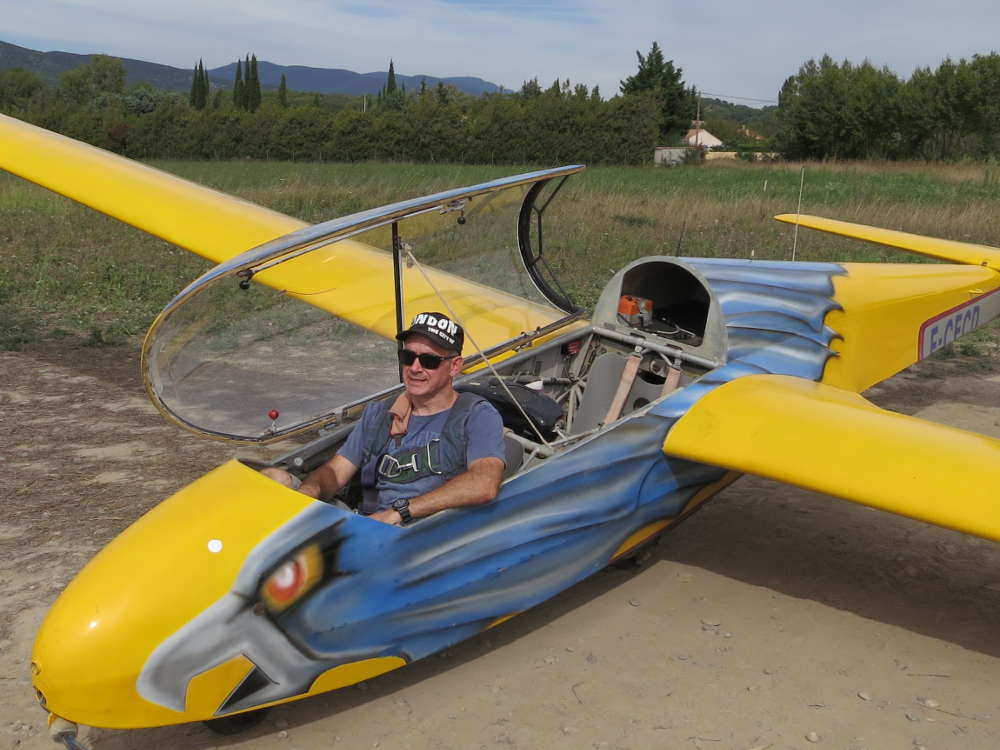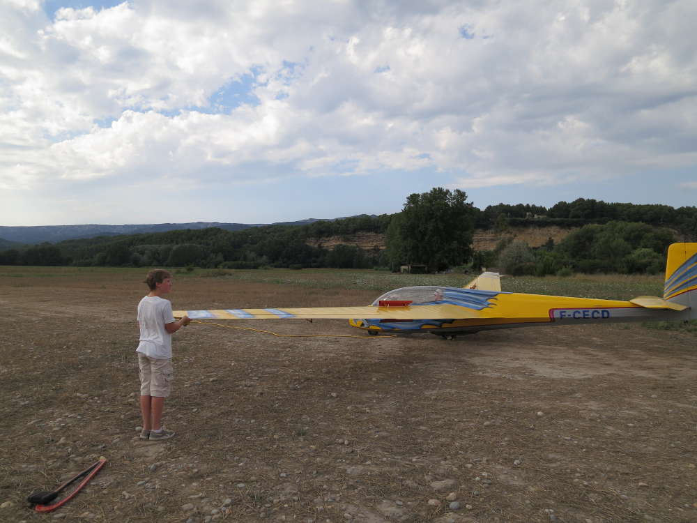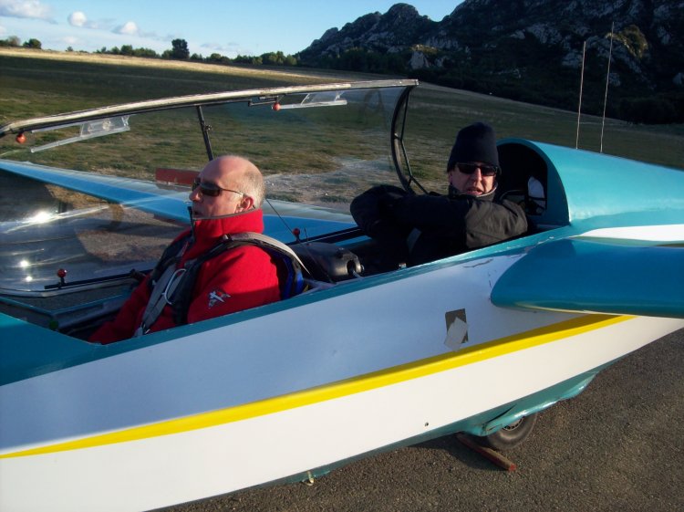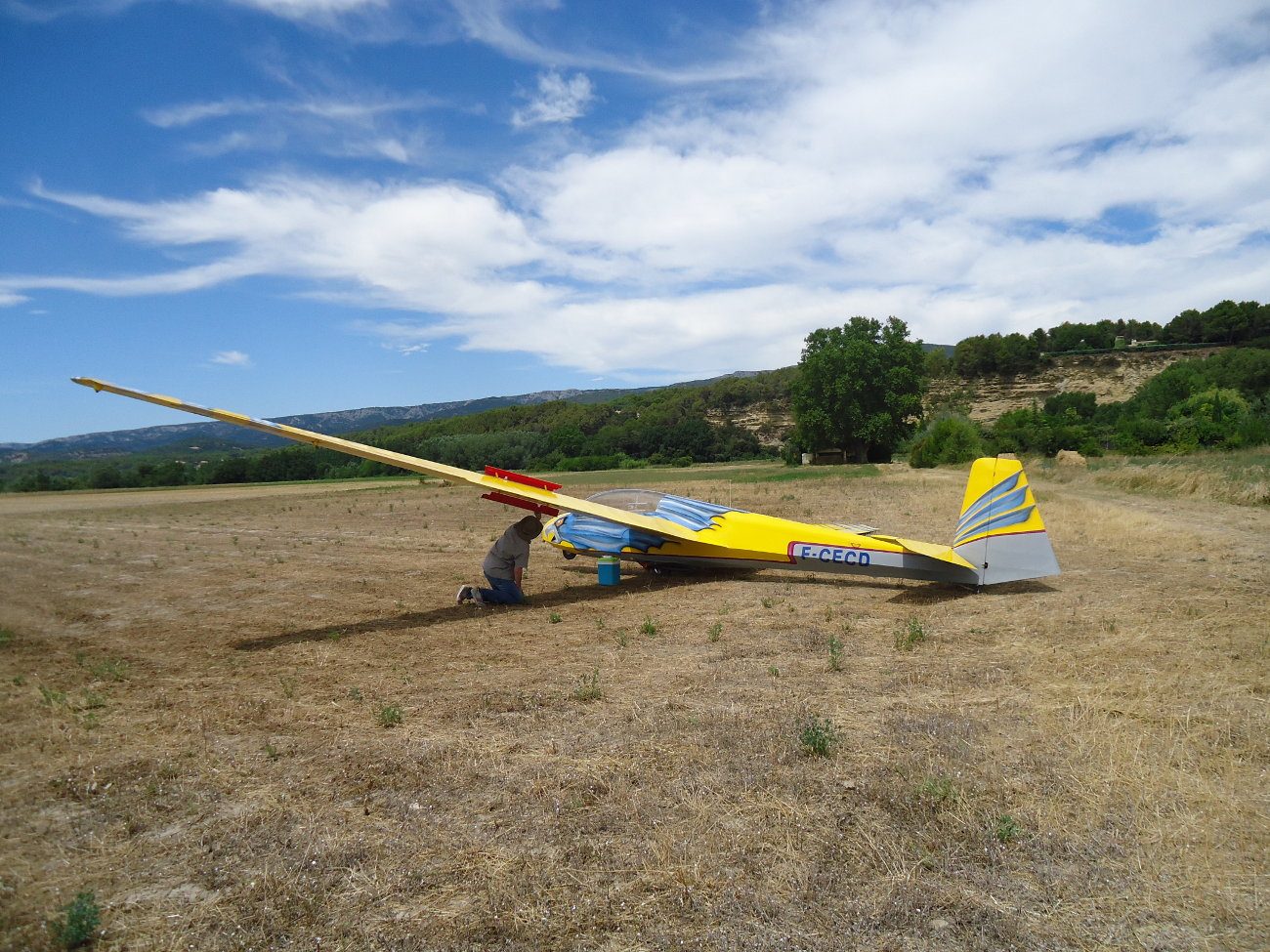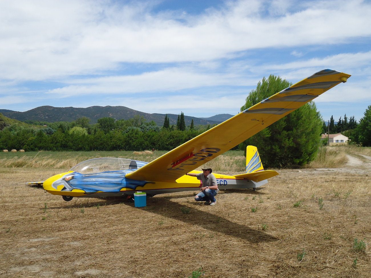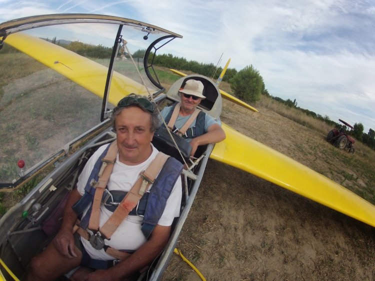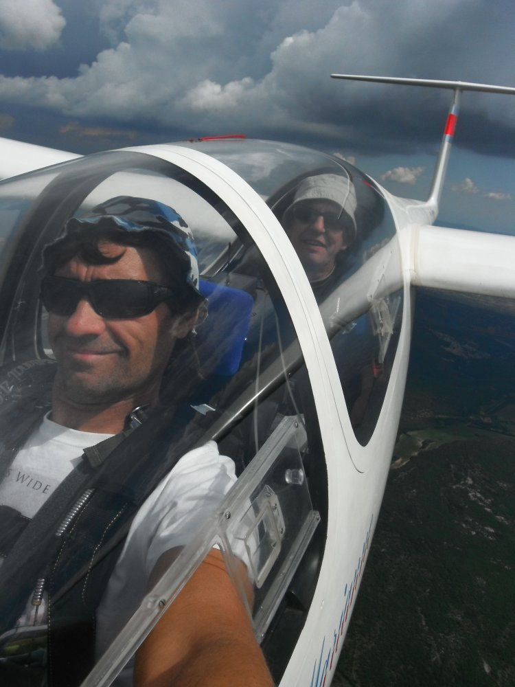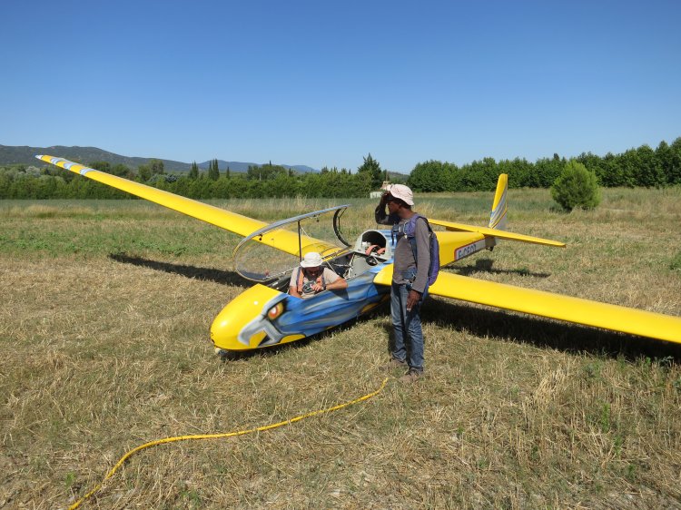 Et puis il faut aussi parler du stage que nous avons organisé et qui a été encadré par Rémi, instructeur au comité régional PACA. Il y a eu Francis du Cannet à côté de Nice et qui est venu poursuivre sa formation commencée depuis peu à St Auban. Il a très certainement apprécié (même s'il a probablement été un peu frustré par les conditions météo un peu difficiles) puisqu'il envisage de "rempiler" pour l'année prochaine. Et aussi Hervé qui est membre du club depuis déjà quelques années mais dont l'activité professionnelle ne lui laisse pas suffisamment de temps pour consacrer celui qu'il souhaiterait pour voler. Cet été, il a décidé de s'accorder le temps nécessaire ; et Rémi a pris l'engagement de lui faire passer son brevet avant la fin de l'année ; pari tenu => voir l'article