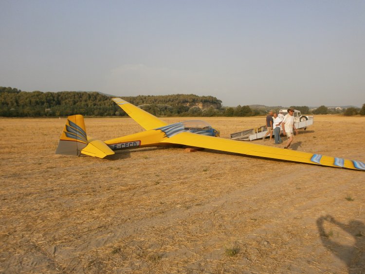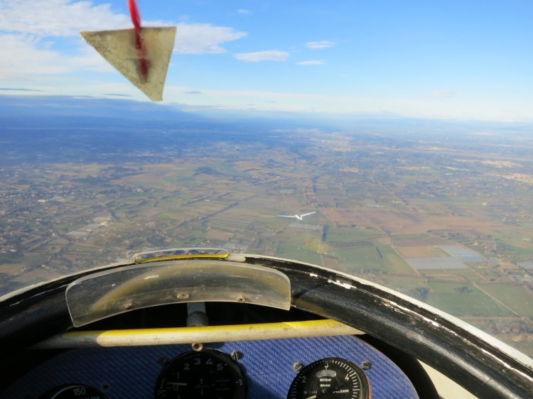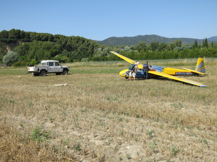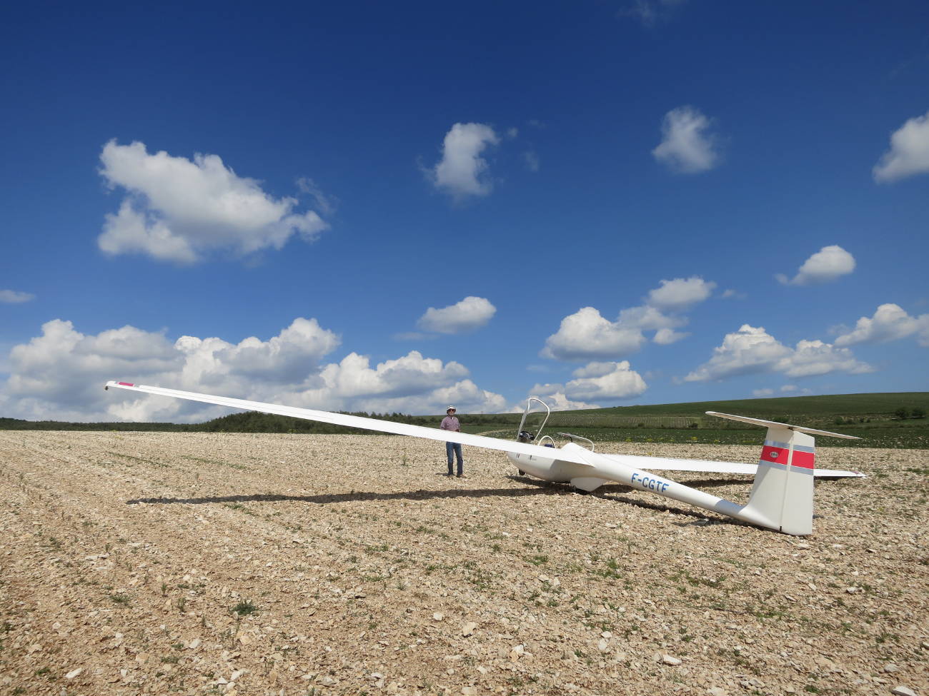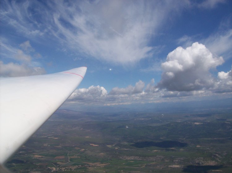 Quant à Alain et Laurent, pour eux les choses se sont compliquées. Partis les derniers et trahis par un altimètre pessimiste de leur Marianne, ils ont dû prendre un 2nd départ après 1h30 de bagarre devant le plateau de St Christol. Avec plus de 2 heures de retard et après avoir tourné le 1er point de virage, les cumulus se disloquant irrémédiablement, il leur a fallu renoncer à 20 km du dernier point de virage et, devant la Motte du Caire, prendre la décision du retour sous peine de se "vacher" à Sisteron. Un retour bien géré malgré tout pour atteindre Carpentras bien après l'atterrissage des autres concurrents > 207 km seulement