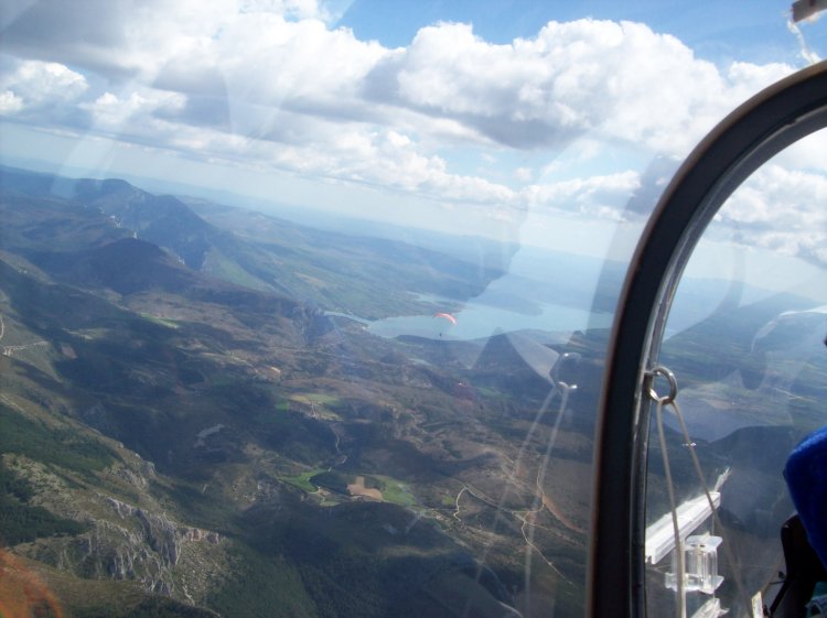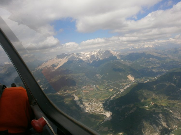 Le jeudi, Philippe mon instructeur me fait découvrir le "parcours" : le Blayeul, la Blanche, l'aérodrome de Seyne, Dormillouse puis les 3 Évéchés, le col d'Allos et Barcelonnette. Puis cap à l'ouest en suivant les crêtes jusqu'au Morgon dominant le lac de Serre Ponçon. Ensuite direction Puimoisson vers le sud-est. Et enfin retour au terrain à 150 km/h. Un joli parcours en Janus C équipé de volets.