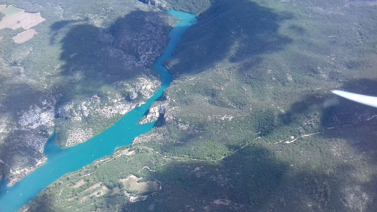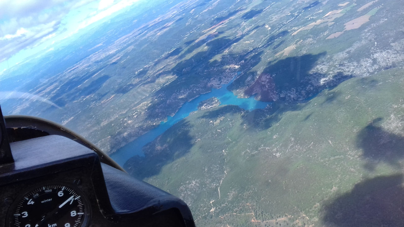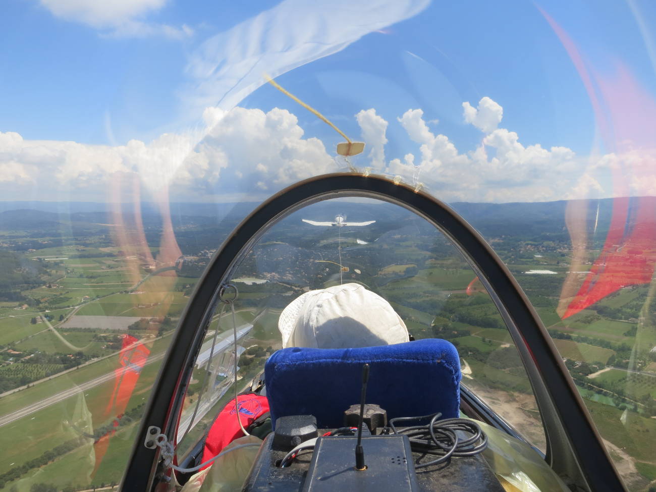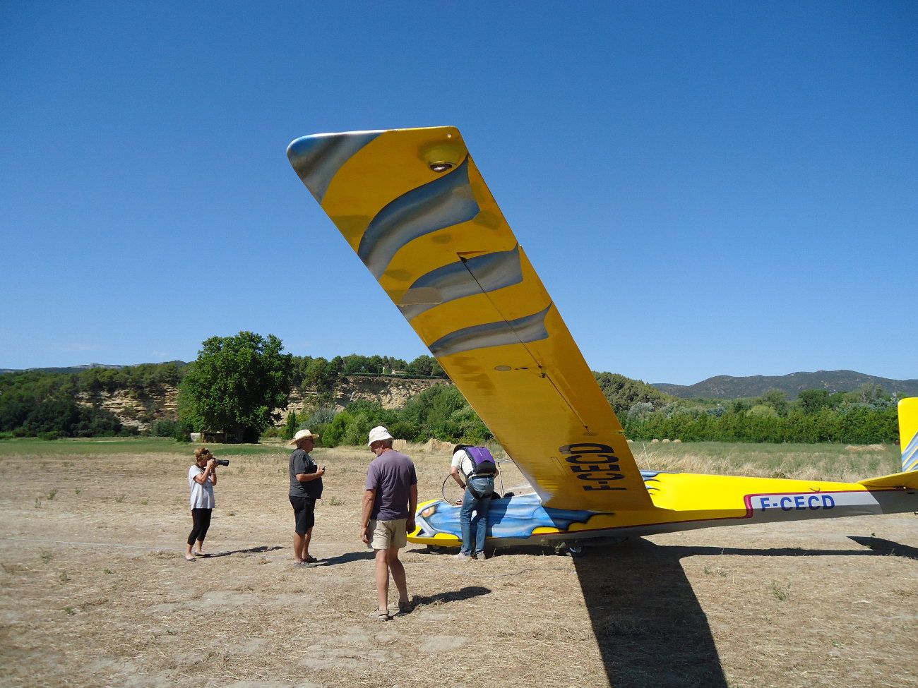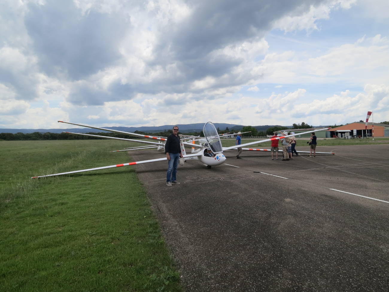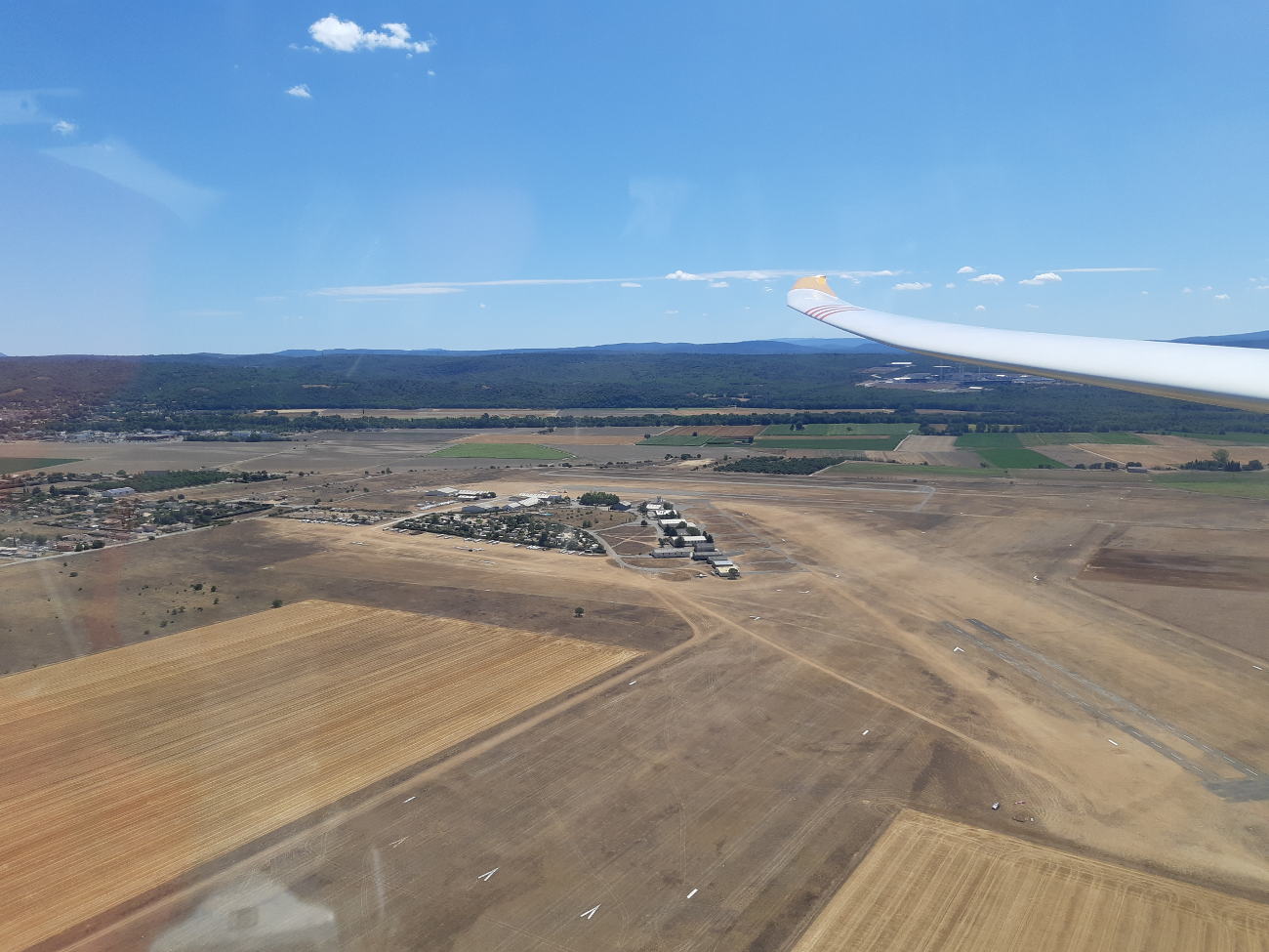 Une chaude journée ce 22 juillet. Marion et Benjamin sont venus à Vinon pour leur 1er vol en planeur. Une belle expérience pour chacun d'eux ; ils ont volé pendant une heure au dessus des basses gorges du Verdon et sur le Luberon. Marion a même expérimenté les prémices du pilotage en prenant les commandes de Manosque à l'étang de la Bonde.
