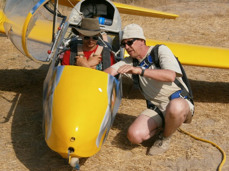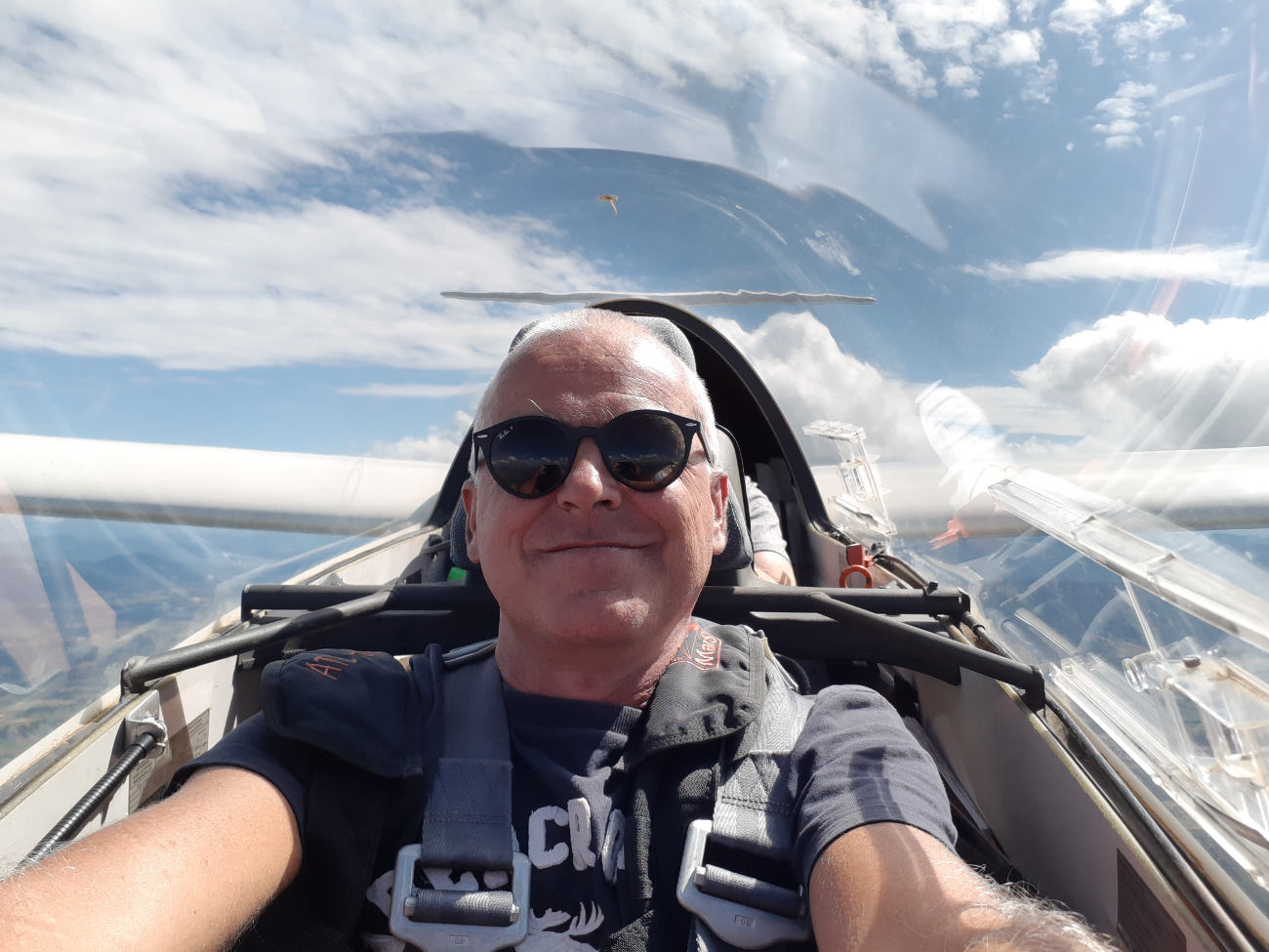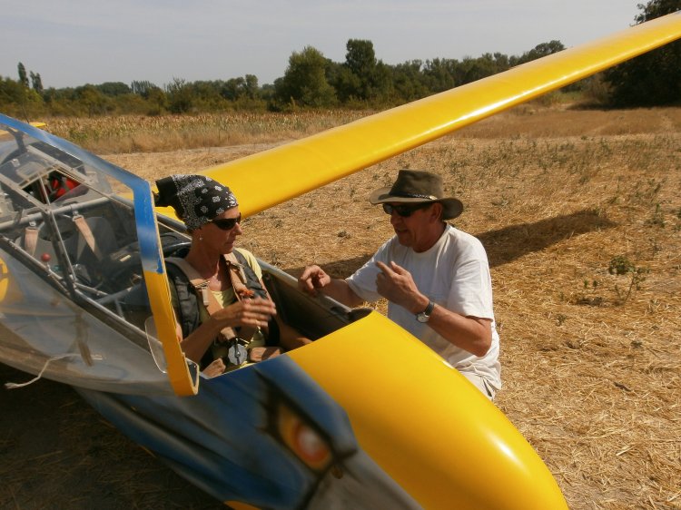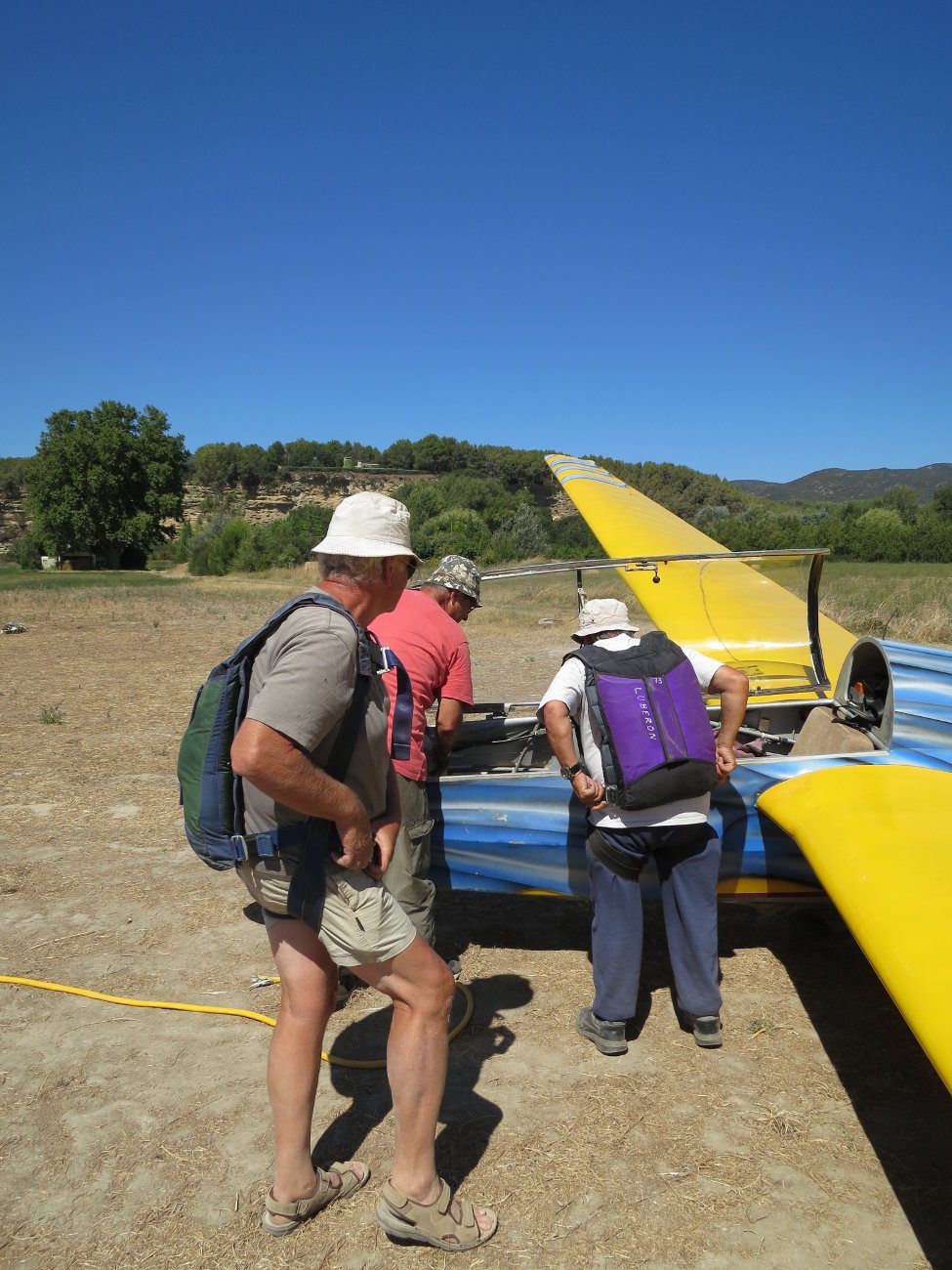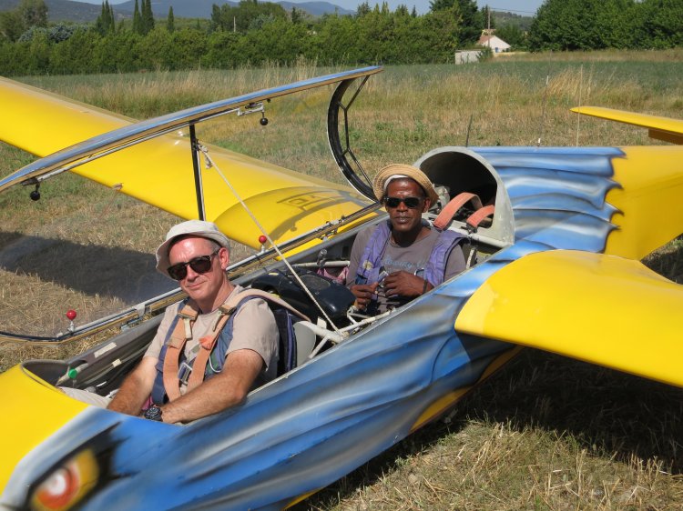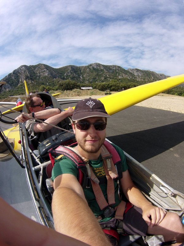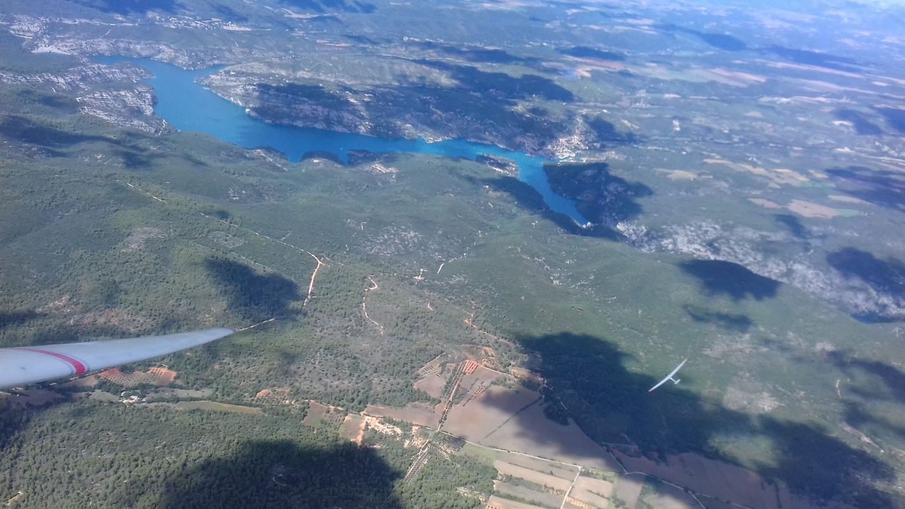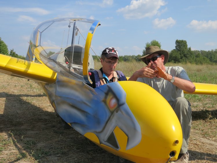 Une chaude journée ce 22 juillet. Marion et Benjamin sont venus à Vinon pour leur 1er vol en planeur. Une belle expérience pour chacun d'eux ; ils ont volé pendant une heure au dessus des basses gorges du Verdon et sur le Luberon. Marion a même expérimenté les prémices du pilotage en prenant les commandes de Manosque à l'étang de la Bonde.