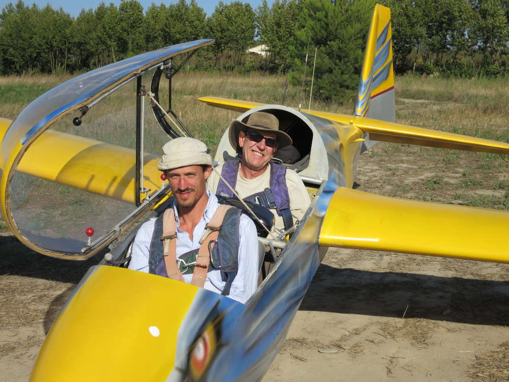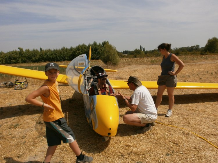 Et enfin, nous avons été très heureux de faire voler tant de monde ; ceux qui nous ont trouvés par hasard, ceux qui avaient un bon cadeau offert par l'un des leurs, les jeunes gens, Amaury et Corentin, qui se sont initiés au pilotage du planeur, et quelqu'uns des invités du mariage de la fille de Laurent ... beaucoup, beaucoup de monde, c'était très gratifiant. Nous espérons que vous serez aussi nombreux l'année prochaine.