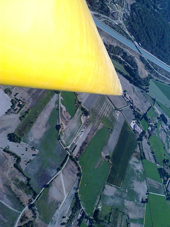 Le samedi, dernier jour, ce sera vol libre. On m'a attribué le Pégase Echo Oscar ... 1h30 de vol et je me fais descendre à la Bigue, alors cap vers St Auban par la vallée de la Bléone mais ça ne s'arrange pas ! À 12 km du terrain, je dois me résigner, je ne pourrai pas atteindre l'aérodrome. J'ai pris garde de rester en local de Mallemoisson. Alors il me faut trouver trouver un champ. Parmis 2 ou 3, j'en repère un qui me semble adéquat ... VERDO mais je tente encore de raccrocher ; je gagne 30 mètres puis j'en perds 40 et j'en regagne 50, j'en reperds 20 puis 30 ... non, décidement pas moyen de remonter, alors c'est décidé je me vache.