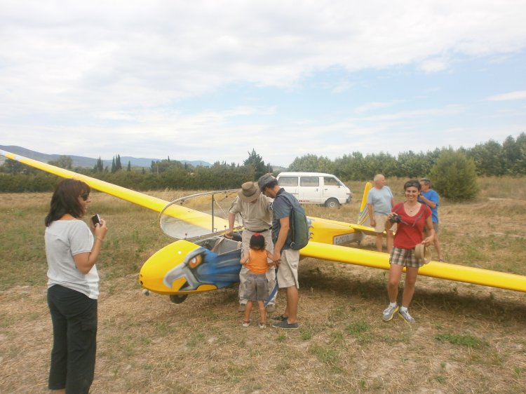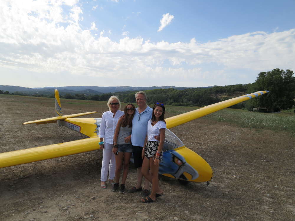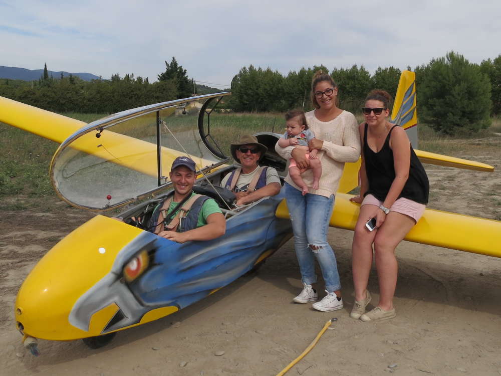 Des touristes de Paris qui sont venus découvrir la vallée de la Durance et les contreforts du Luberon vus d'en haut (Séverine et son mari, Pascal et un ami), des vosgiens venus fêter les 60 ans d'un frère de Marie à Puget et en profiter pour s'offrir un survol de la maison de la petite soeur, un collègue de travail de Laurent, Philippe qui est venu faire voler ses 2 filles Roseline et Adeline, la famille d'Alain (Laurence, le beau-frère et la belle soeur), celle de Laurent (Pauline, Yann, Charlotte, Manu) et Laetitia une amie, des amis de Gilles, José et son fils Camille qui sont venus de Béziers (Camille un peu déçu de n'avoir pas pu faire de grands vols), Tano qui est venu faire faire des prises de terrain à un élève sur le Dimona depuis St Rémy ...