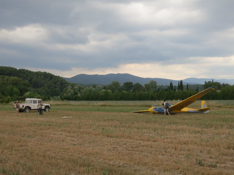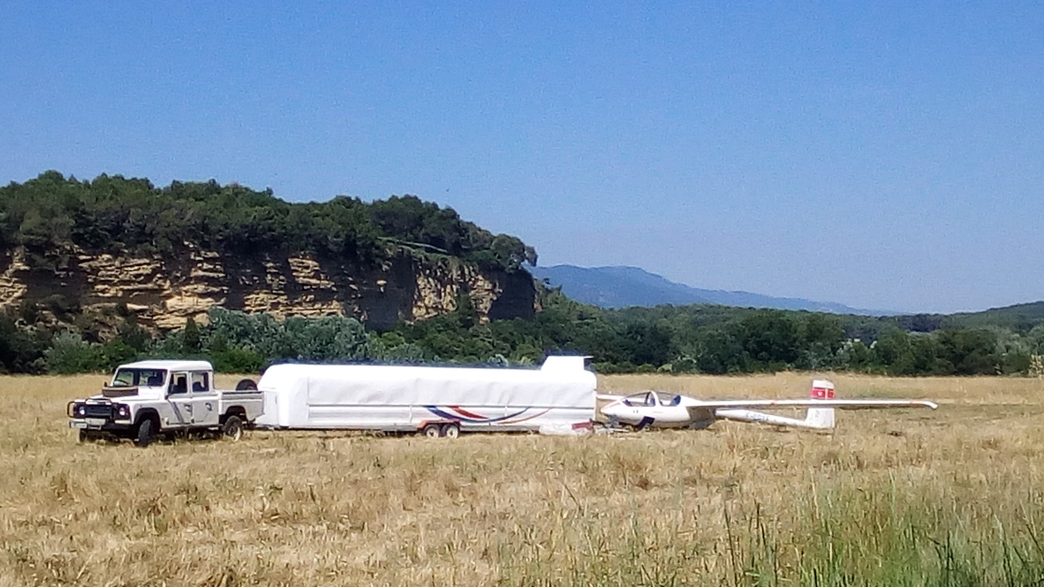 Après ces belles journées passées à Carpentras pour disputer la coupe du Ventoux, il a fallu ramener les planeurs. Alain s'est chargé du LS4 avec lequel il a volé jusqu'à Vinon. Quant au Marianne ce sont Hervé et Laurent qui ont fait un vol de retour pour une vache programmée sur la piste de Puget ; en effet, le TF devait revenir à Mérindol pour sa visite annuelle.