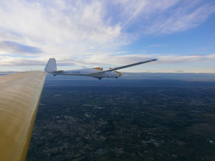 Nous ne monterons pas beaucoup plus et nous n'irons pas très loin. Alors après 2h30 de vol, le froid qui commence à se faire sensiblement sentir, direction la zone de perte d'altitude pour la piste 36. C'est Alain qui pose le K13.