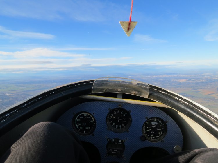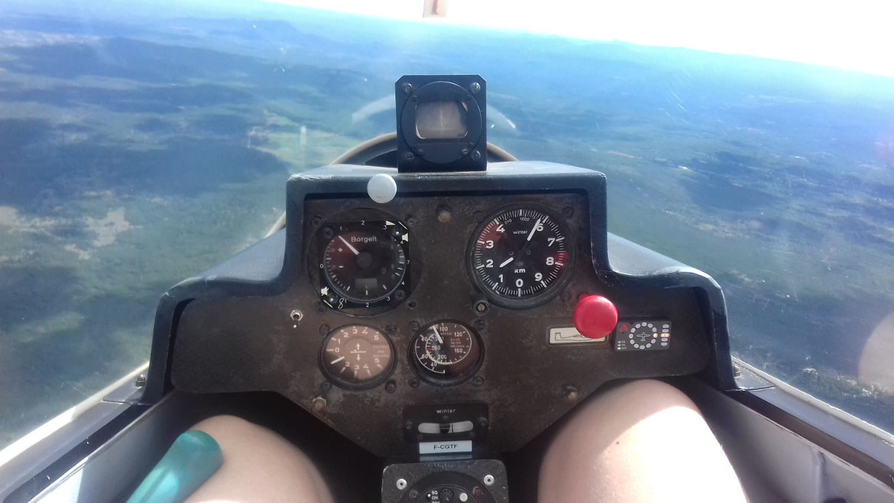 Daniel qui pilotait le LS4 a tourné la totalité du circuit. Mais il est sorti de quelques mètres de la zone autorisée qui, ce jour là, était plafonnée à 2301 m, ce qui lui a valu quelques petits points de pénalité. En tous cas, un beau circuit réussi de 235 km > voir la trace