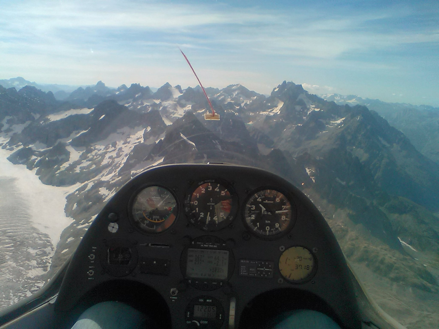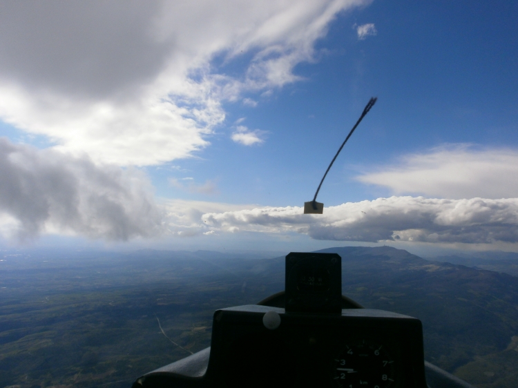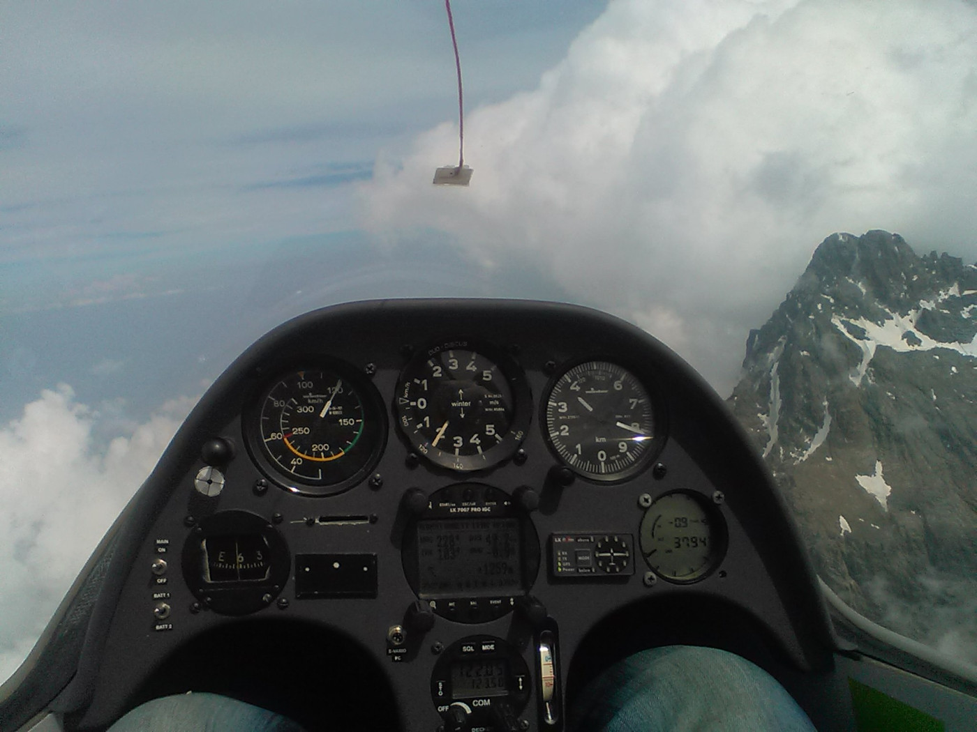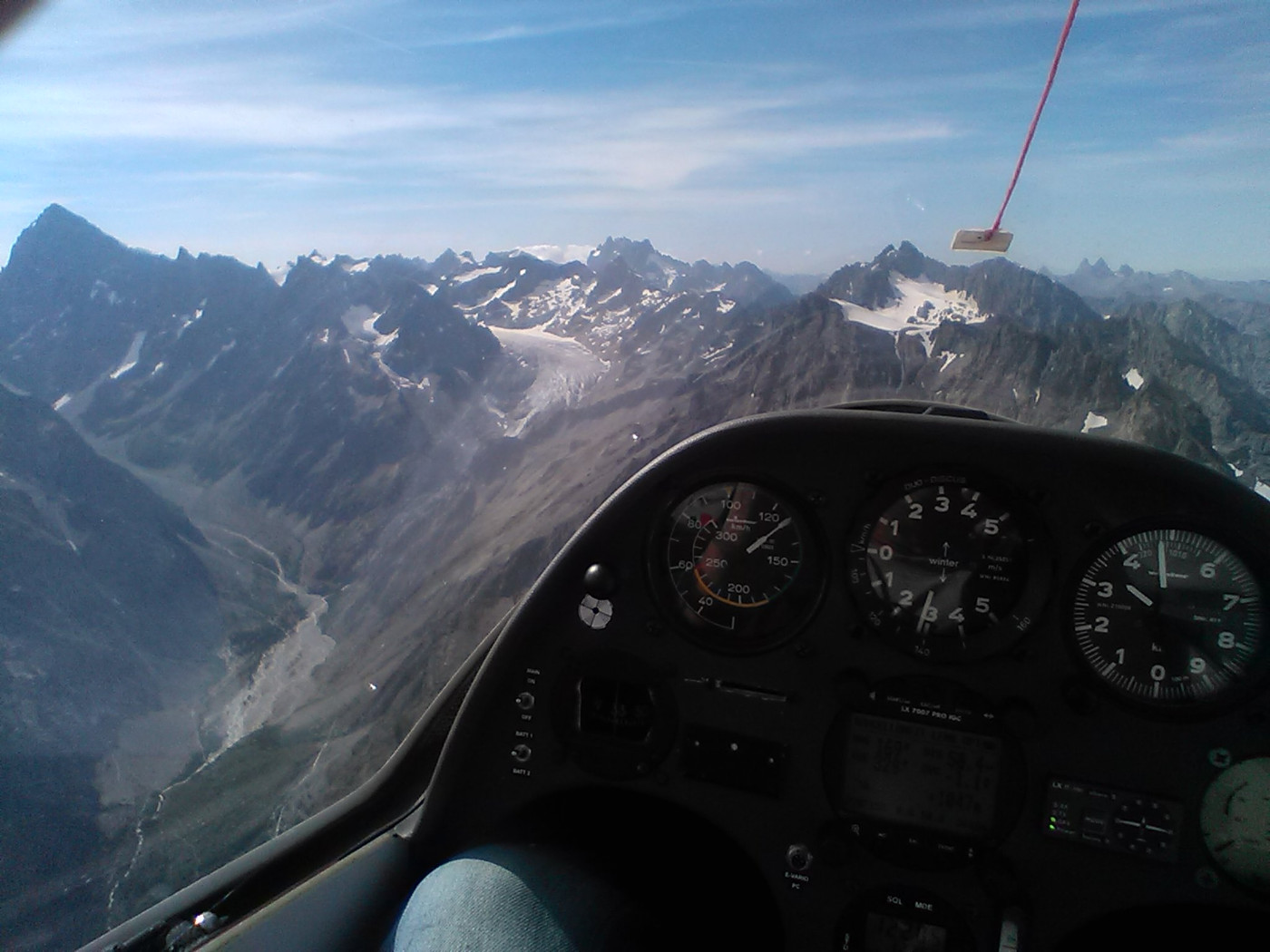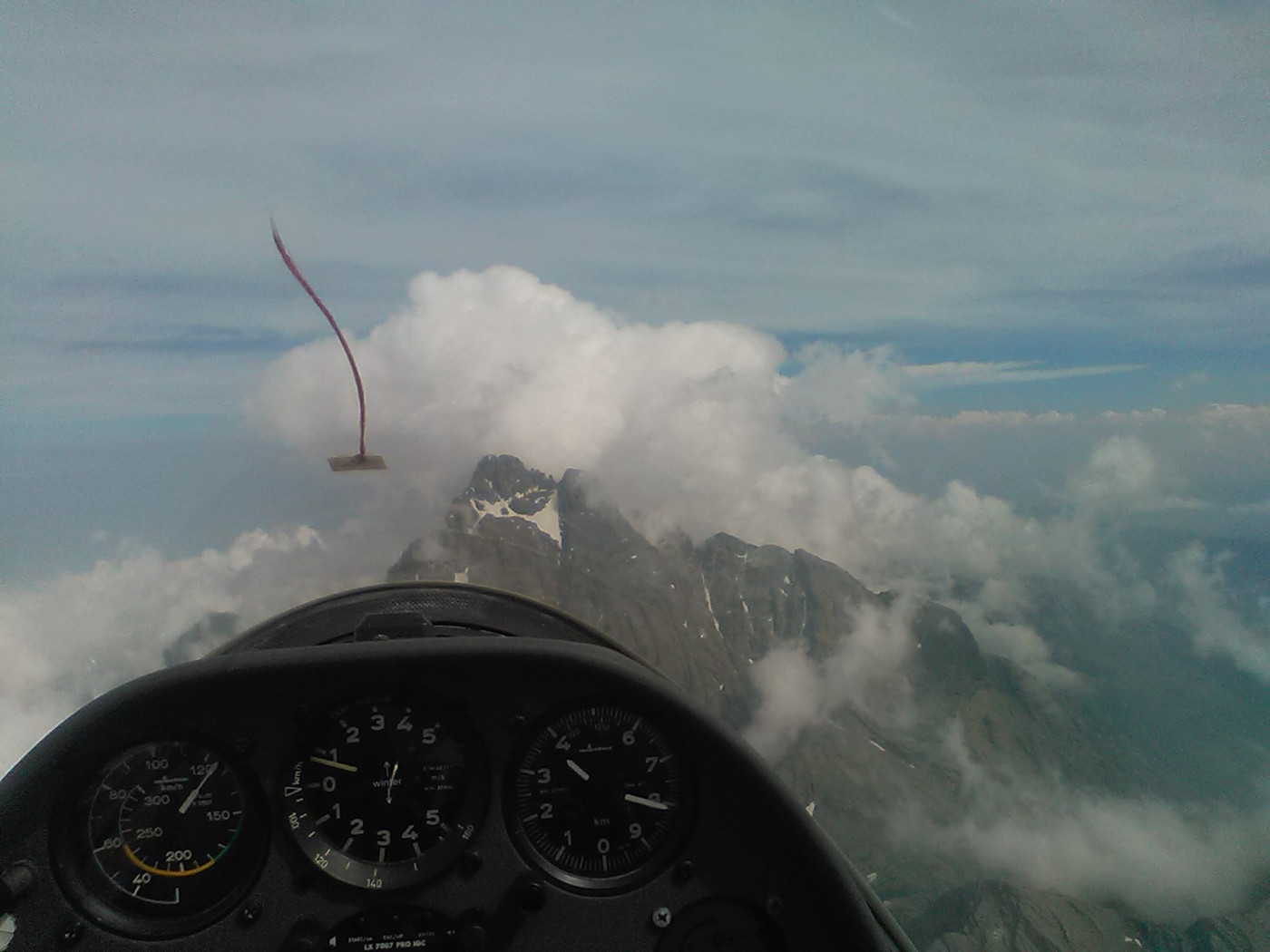 En ce qui nous concerne, nous avions engagé 2 planeurs. Daniel qui pilotait le LS4 a été contraint d'abandonner à cause d'un sérieux problème au genou qui rendait le pilotage impossible. Alain, Gilles et Laurent qui se sont partagés le Marianne. Nous n'avons pas fini toutes les épreuves mais nous avons malgré tout fait quelques beaux vols, tel celui-ci pendant lequel nous avons attrapé l'onde > 3900 m sur Lure
