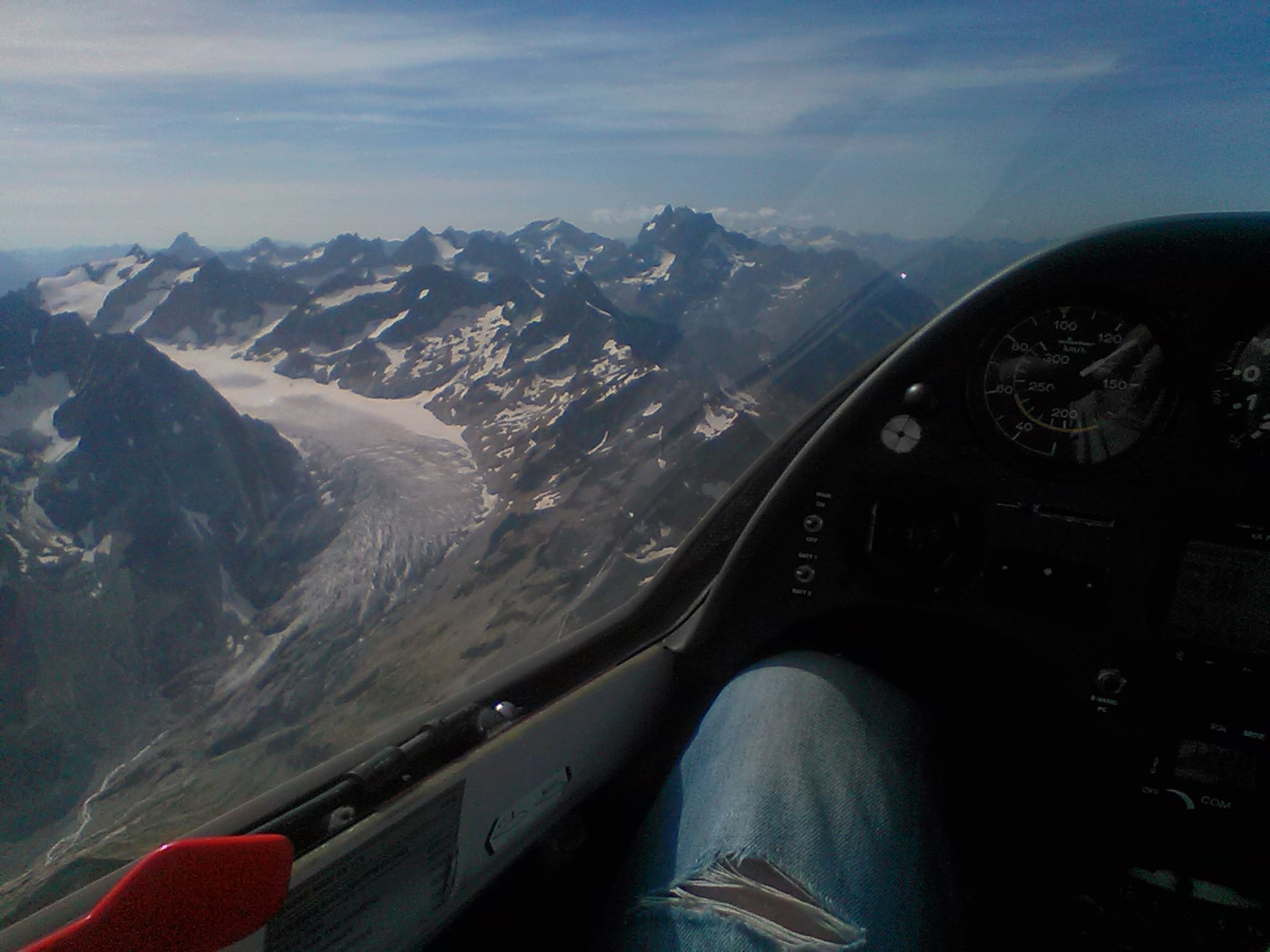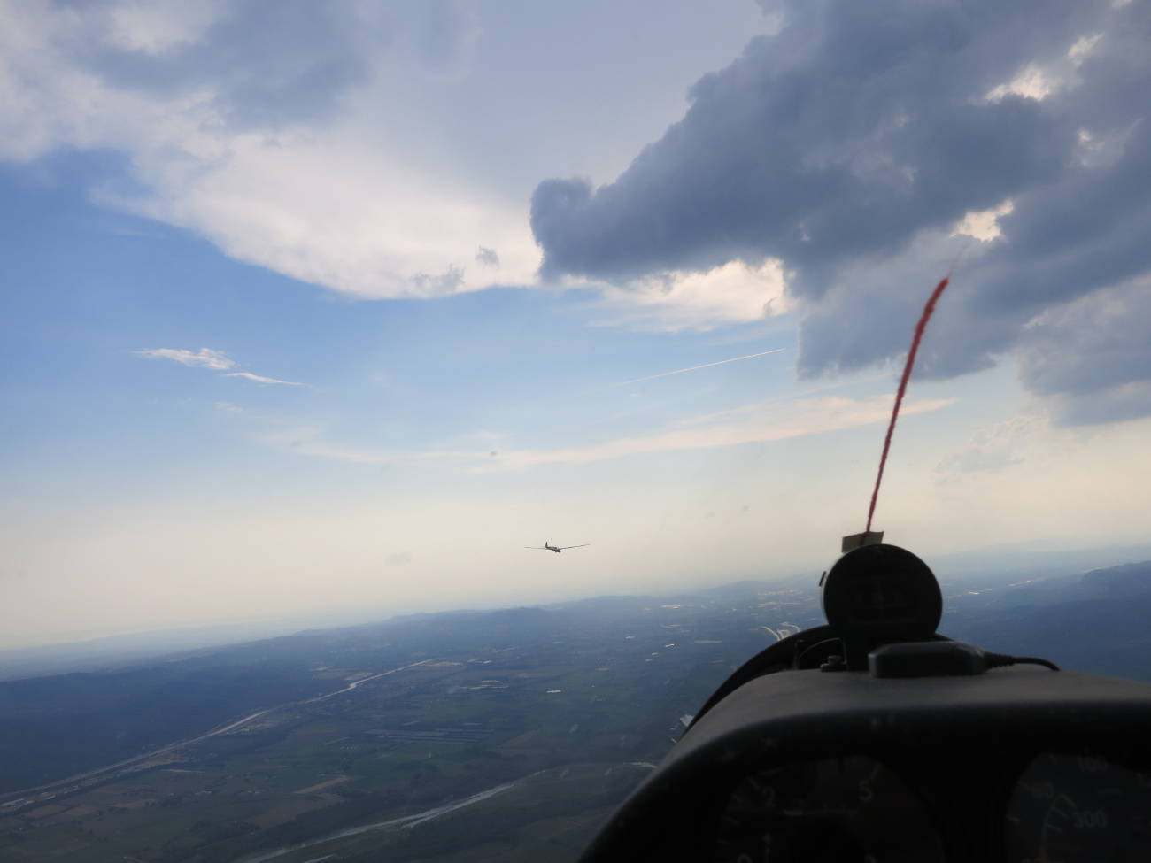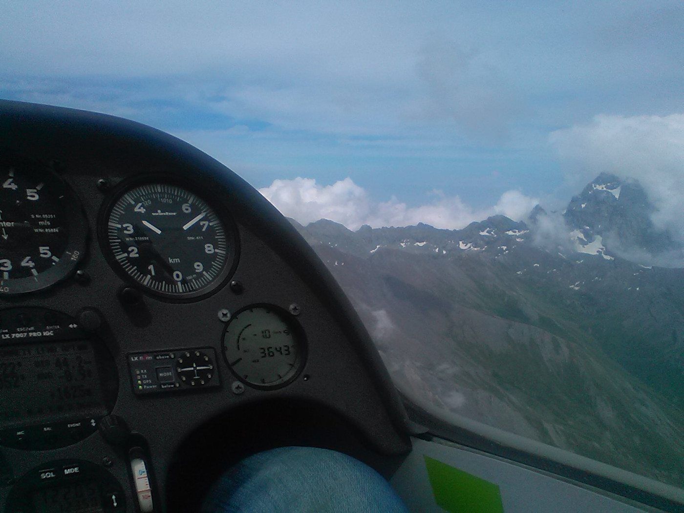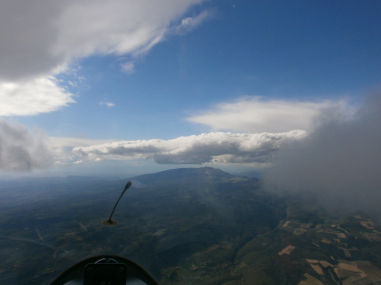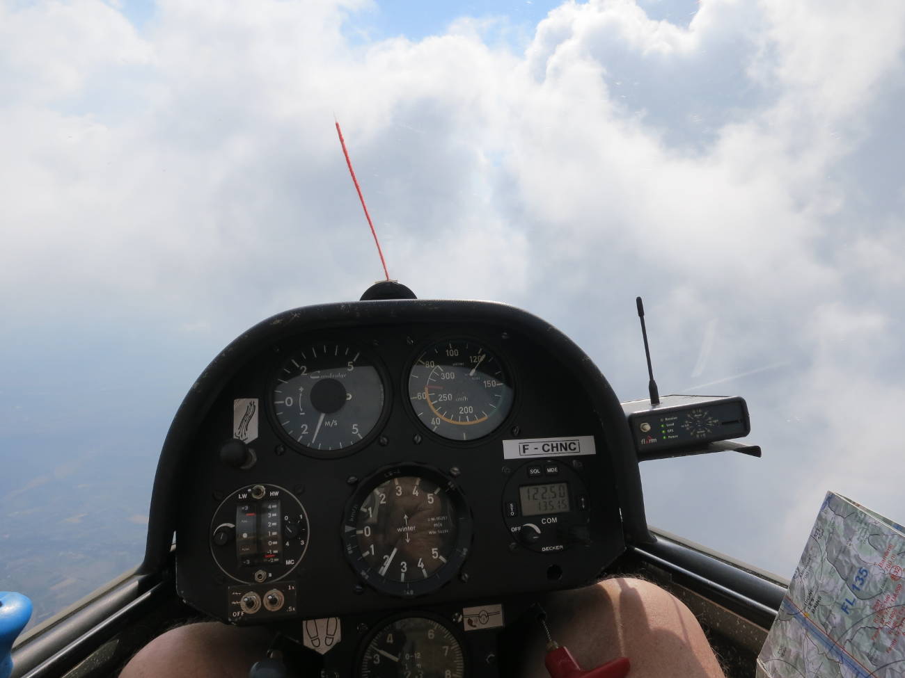 En ce qui nous concerne, nous avions engagé 2 planeurs. Daniel qui pilotait le LS4 a été contraint d'abandonner à cause d'un sérieux problème au genou qui rendait le pilotage impossible. Alain, Gilles et Laurent qui se sont partagés le Marianne. Nous n'avons pas fini toutes les épreuves mais nous avons malgré tout fait quelques beaux vols, tel celui-ci pendant lequel nous avons attrapé l'onde > 3900 m sur Lure
