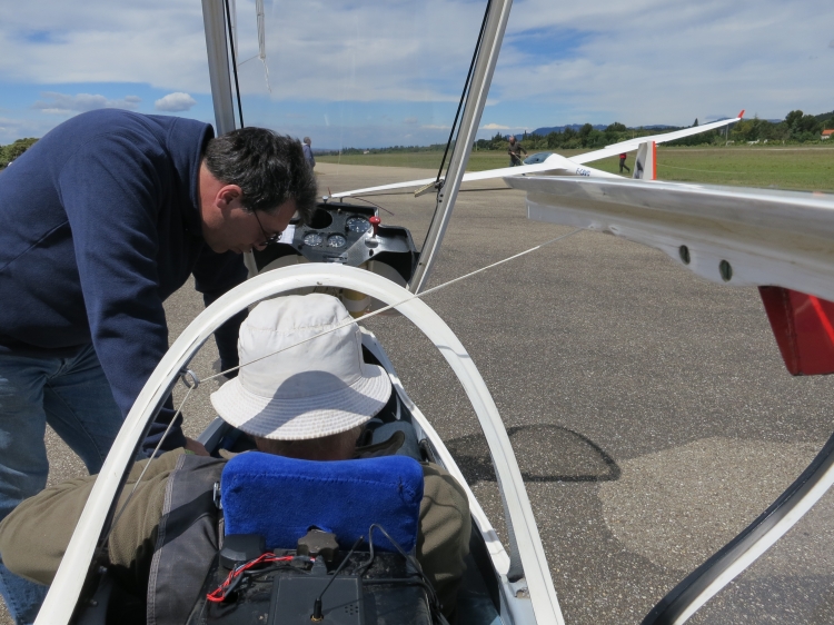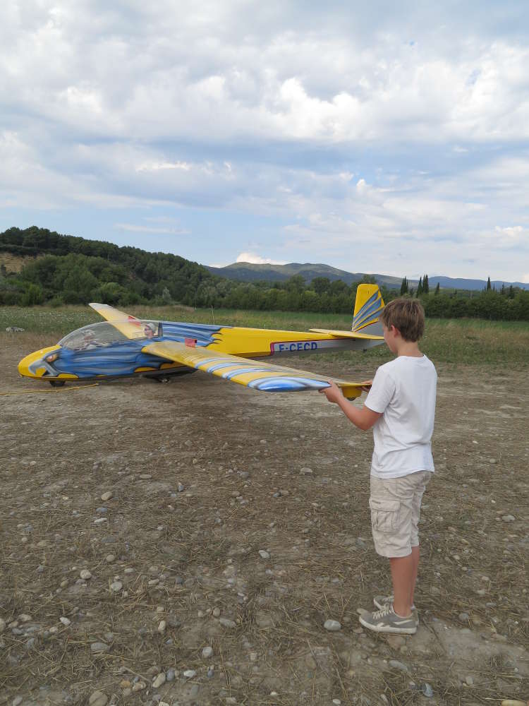 voir le diaporamaCe matin, Guillaume arrive à l'aérodrome de Romanin pour faire son 1er vol en planeur. C'est un cadeau de son amie Lise. Il est très curieux au sujet de la machine, de la technique de mise en l'air, des sensations de pilotage et ce d'autant plus qu'il est en train de faire l'apprentissage du pilotage motorisé ; il a d'ailleurs été laché sur avion il y a quelques jours.