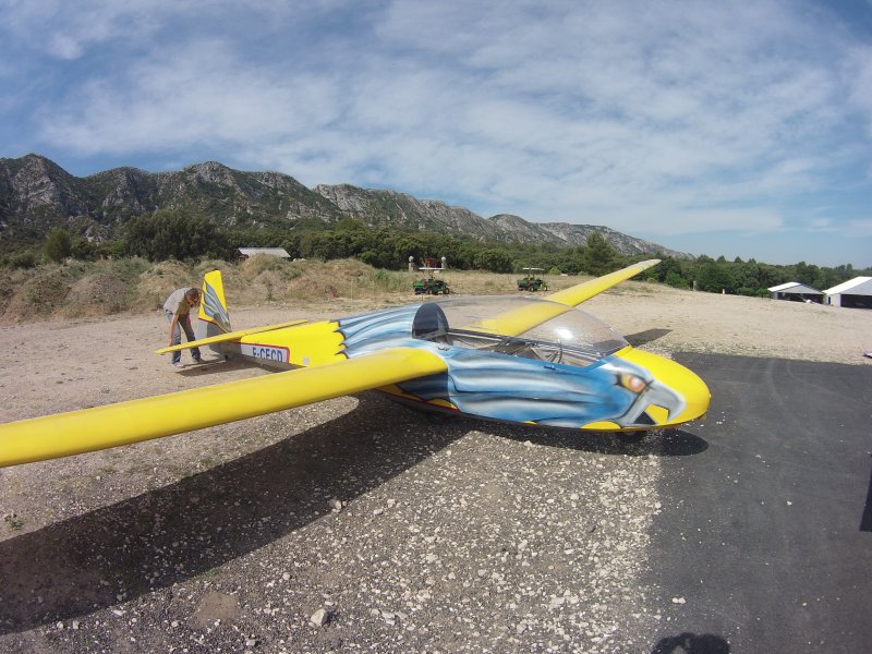 Pour ce qui est de concourir, la météo ne nous a donné hélas qu'un seul et unique jour pour faire la compétition, une seule et unique épreuve pour une semaine complète de présence ... la nature n'a pas été très généreuse avec les vélivoles, nous qui l'aimons tant. Alors il ne fallait pas la rater cette journée !