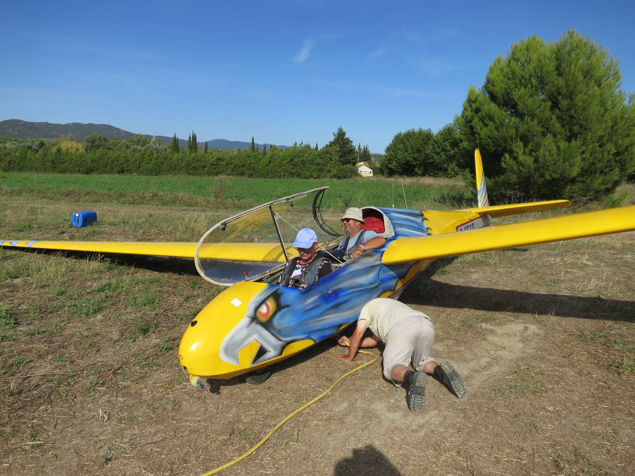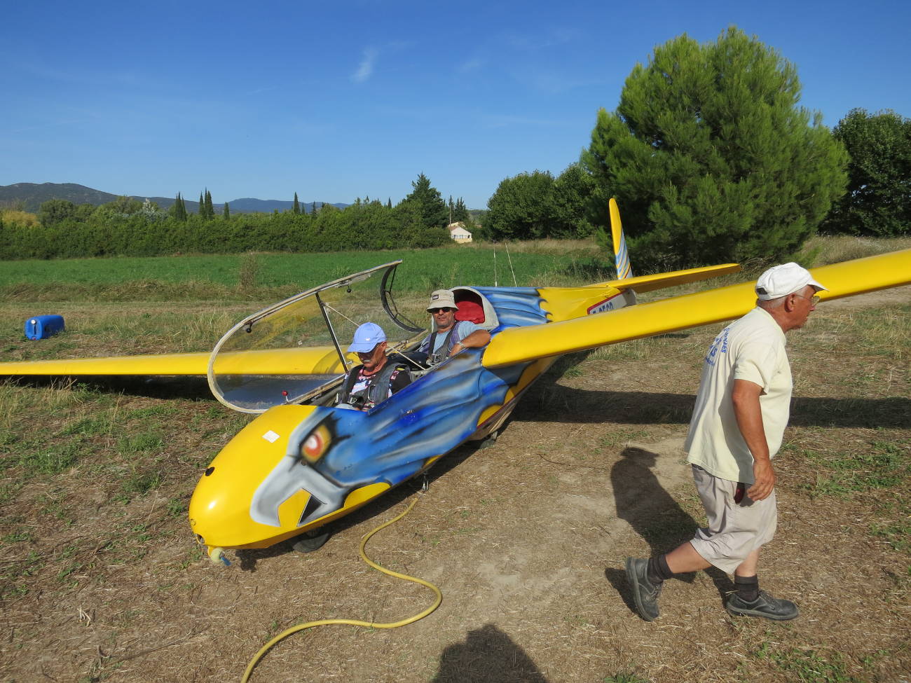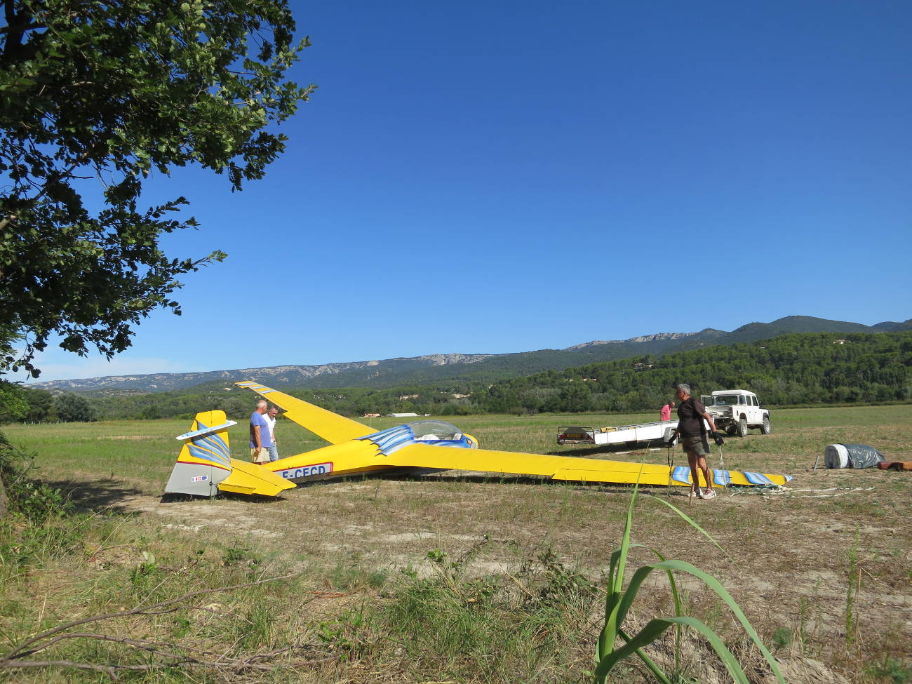 Comme chaque année, les très sympathiques membres de l'aéroclub de Carpentras ont organisé la coupe du Ventoux. Huit planeurs inscrits. Certaines épreuves ont été annulées faute de météo favorable. Mais cela a été l'occasion de rencontrer les amis et de faire connaissance avec des vélivoles d'autres régions. Notre club a présenté 2 planeurs : le LS4 et le Marianne. Différents équipages se sont relayer sur le biplace : Alain & Laurent, Philippe & Laurent, Philippe et René.