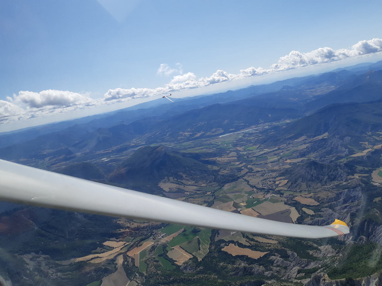 Le 1er jour, l'instructeur nous fait une reconnaissance du grand local, Vaumuse, Authon, montagne de Jouère, Vaumeilh au nord ; la Bigue, Beyne, la Serre de Montdenier au sud-est. À partir du 2ème jour nous sommes lachés en solo, en LS4 pour Alain et Pégase pour moi. La semaine s'écoule rapidement entre les vols de la journée, les cours théoriques, les briefings météo et d'après vols.